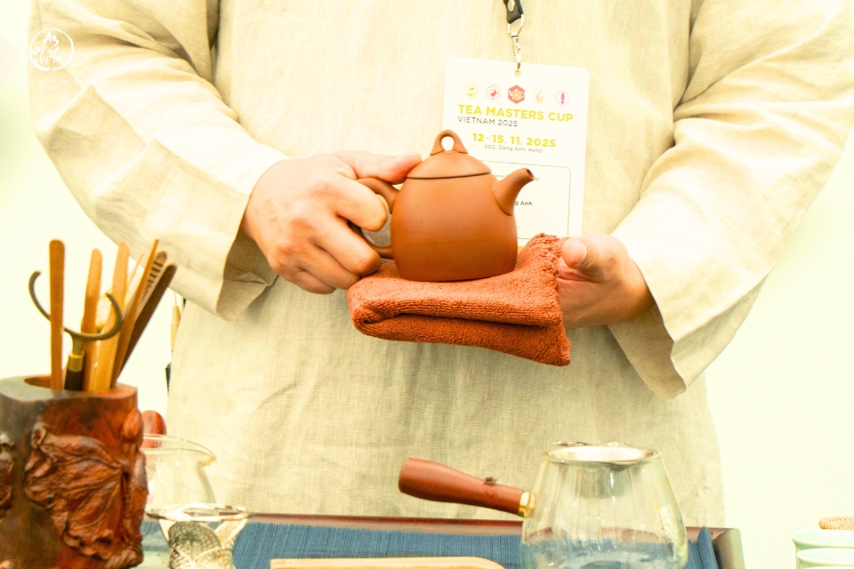 Song song, An Thổ Túc cũng vinh dự đồng hành cùng cuộc thi Tea Master Cup Vietnam 2025, sân chơi uy tín dành cho các nghệ nhân và người yêu trà chuyên nghiệp. Không khí tại cuộc thi rộn ràng: giữa tiếng nước sôi, hương trà thoảng nhẹ, các thí sinh chăm chú trong từng thao tác, mỗi người kể câu chuyện riêng của mình qua một ấm trà.