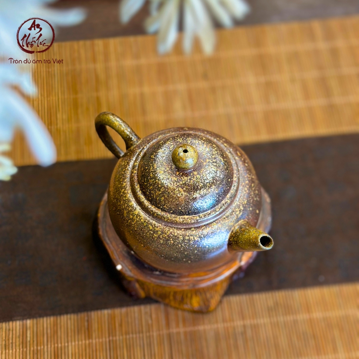 Trong khoảnh khắc lửa đạt đỉnh nhiệt, tro củi li ti bay theo gió lò, bám lên bề mặt ấm đang đỏ rực. Ở nhiệt độ 1.200–1.250°C, tro nóng chảy, kết hợp với silica trong đất để tạo nên lớp men tro tự nhiên – thứ men không thể lặp lại ở bất kỳ chiếc ấm nào khác. Tùy vị trí đặt trong lò và loại củi sử dụng, mỗi chiếc ấm sẽ mang một diện mạo độc bản: hiệu ứng muối tiêu mịn, ánh kim dịu, vệt chảy nhẹ, hay sắc nâu trầm mộc mạc.